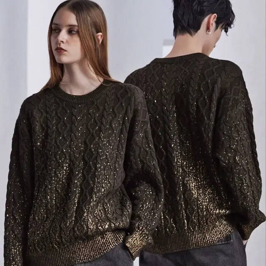 그라데이션 포일이 감싸는, 겨울에 잘 어울리는 케이블 니트.
