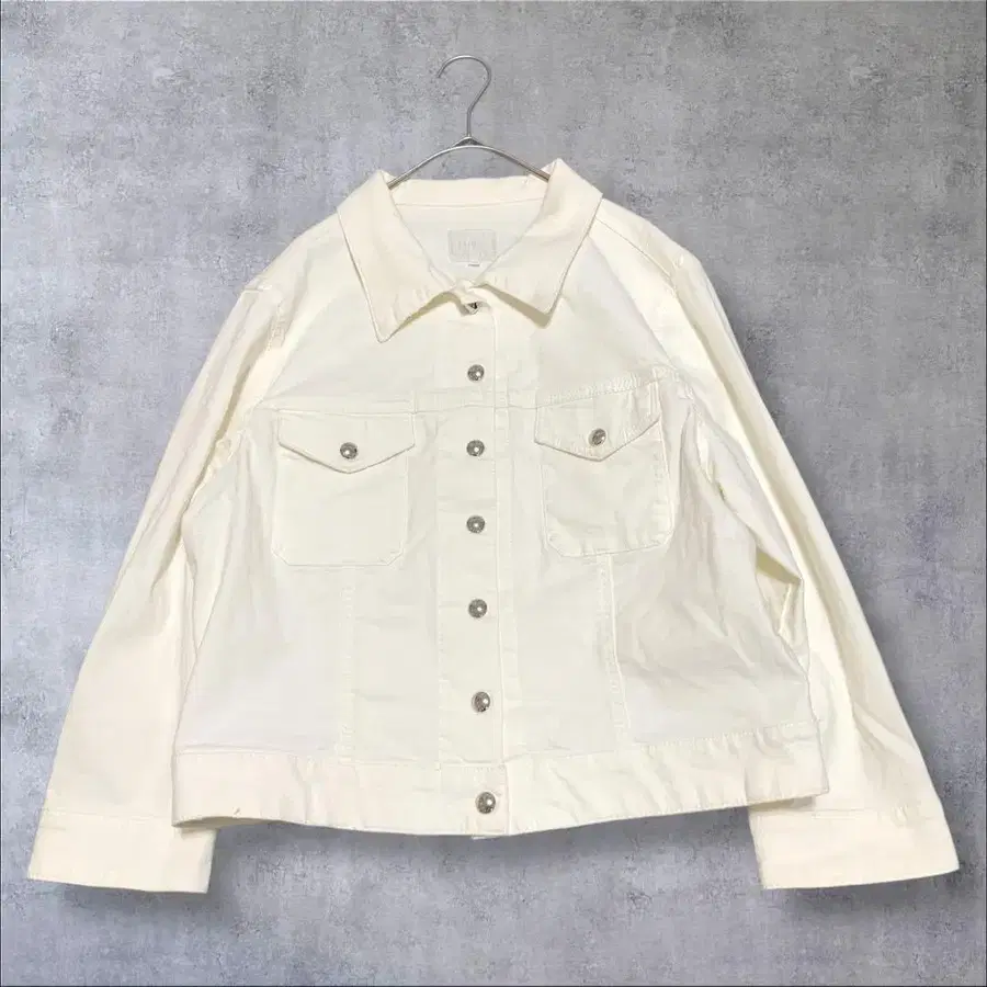 46 사이즈 자유구 데님 자켓 화이트 은색 버튼 코튼 4L 상당