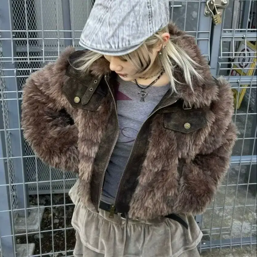 Never mind the XU 스웨이드 퍼 재킷 브라운