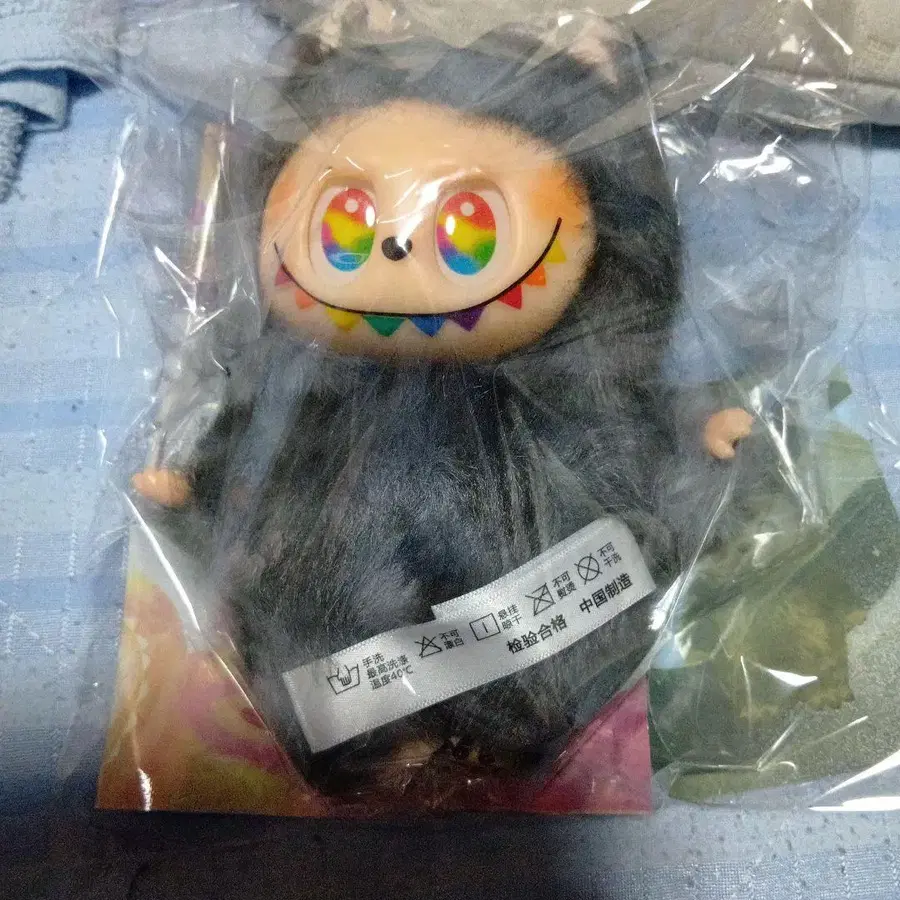 레인보우 컬러 눈과 레인보우 컬러 송곳니의 블랙 봉제 인형 약 17cm