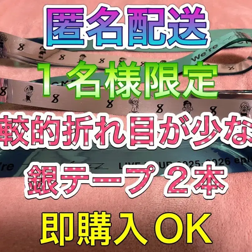 We're timelesz LIVE TOUR 2025-2026 episode1 FAM DOME의 은색 테이프입니다. 은색 테이프 풀컷 (노컷) ⚠️ 즉시 구매 OK ⚠️ 2개 가격입니다. ⚠️ [ 상품 상태 ] 접힌 자국이 적은 은색 테이프 2개 *접힌 자국이 적은 은색 테이프보다 상태가 좋은 상품입니다. ⚠️ 2개 가격입니다. ⚠️ * 한번 사람의 손을 거친 상품이므로, 완벽하게 흠집 없는 은색 테이프를 원하시는 분은 구매를 삼가해 주시기 바랍니다. 은색 테이프는 콘서트 낙하물이므로, 은색 테이프 발사 시 화약으로 인한 마찰이나 요철 등이 있을 수 있습니다. 신경 쓰이시는 분은 구매를 삼가해 주시기 바랍니다. 묶음 구매해 주신 분께는 덤을 드리겠습니다. ○● 덤으로 드리는 은색 테이프는 찢김이나 은색 테이프 발사 시 화약으로 인한 흠집 등이 있을 수 있습니다. 양해 부탁드립니다. ○● [ 발송 방법 ] 익명 배송으로 발송 예정입니다. [ 포장 관련 ] 배송 시 은색 테이프를 말아서 종이로 감싸 마스킹 테이프로 고정하여 에어캡 등으로 포장하여 발송합니다. ⚠️ 예약은 받지 않으므로, 이해 부탁드립니다. ⚠️ ⚠️ 즉시 구매 OK ⚠️ timelesz 타임리스 파우치 사토 쇼리 키쿠치 후마 마츠시마 소 테라니시 타쿠토 하라 요시타카 하시모토 마사키 이노마타 슈샤 시노즈카 다이키 인기 그룹 - timelesz 굿즈 종류 - 기타 장르 - 쟈니즈 그룹명 - 쟈니즈(SMILE-UP.) 유닛명 - timelesz