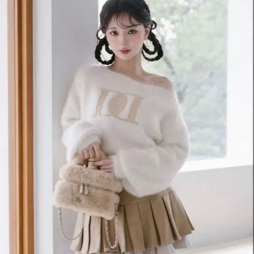 Darich 다리치 DD 로고 원숄 니트탑 아이보리