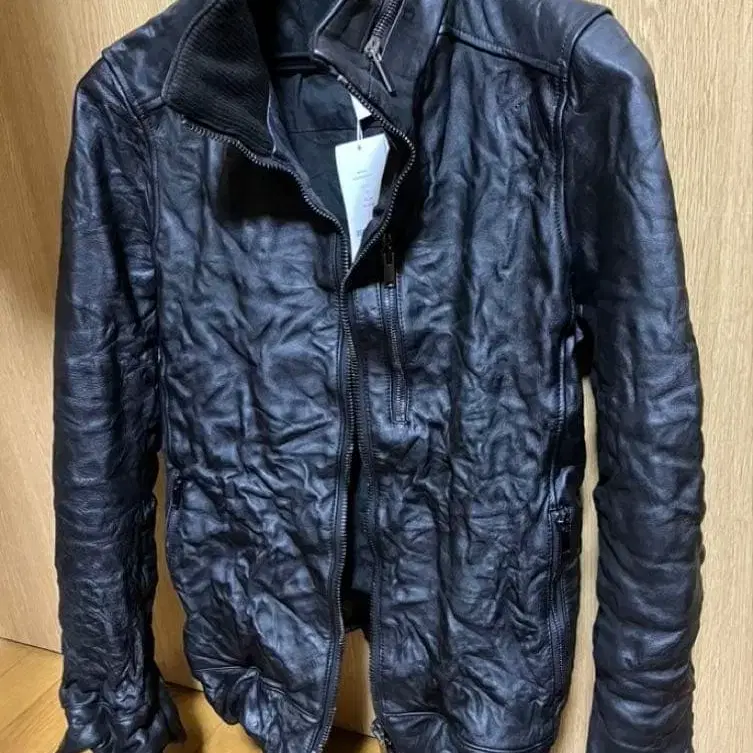 • 블랙 가죽 자켓 스탠드 카라 YKK 지퍼