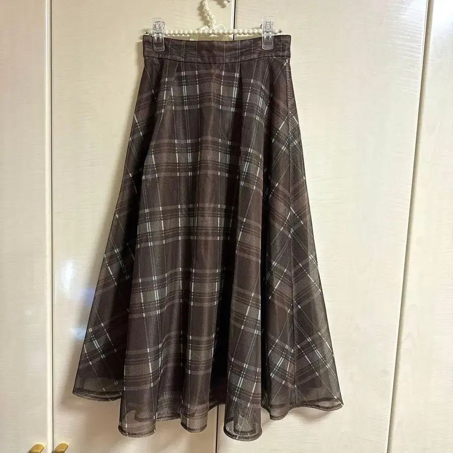 프로포 메쉬 체크 무늬 스커트