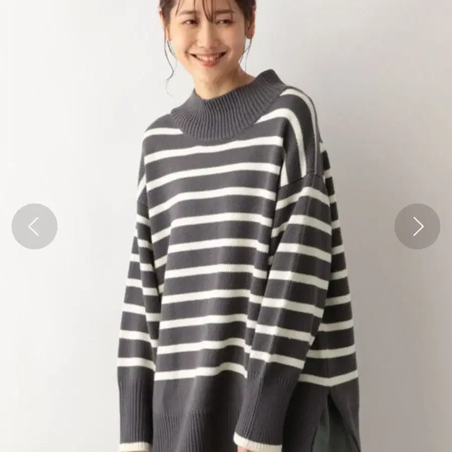 글로벌 워크 보풀이 잘 나지 않는 니트 튜닉 차콜 x 아이보리 보더
