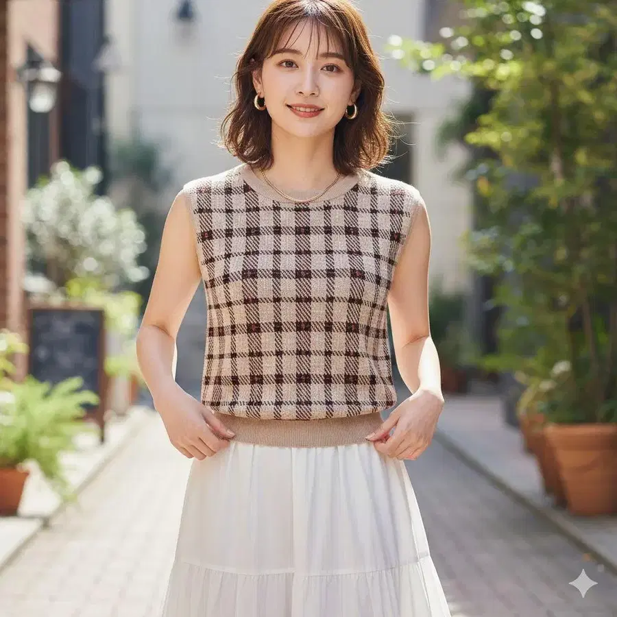 아푸와이저 리셰 체크 무늬 니트 베스트 2 핑크 베이지 썸머 니트