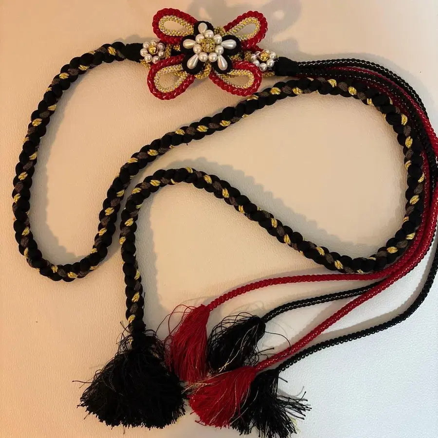 성인식 오비 장식 꽃 장식 포함 허리띠 빨강 검정 금색