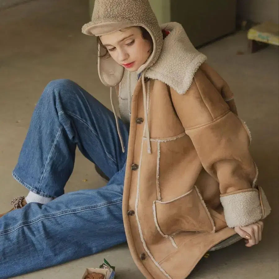 [ forsky. ] 보아 파이핑 페이크 무스탕 미디엄 자켓