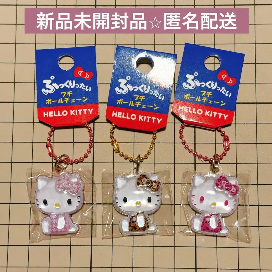 헬로키티 푹신푹신 프티 볼체인 하운드투스 레오파드 무늬 3종 세트