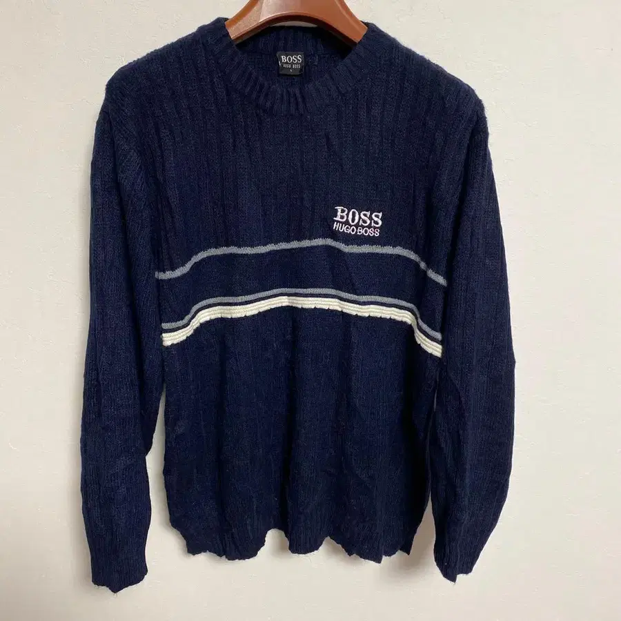 HUGO BOSS 휴고보스 네이비 자수 로고 리브 니트 L