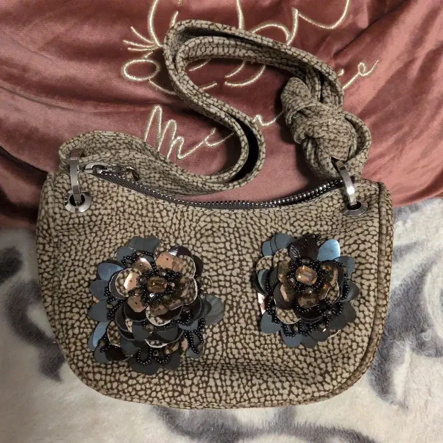 볼보네제 한정판 백 꽃 장식 베이지 핸드백