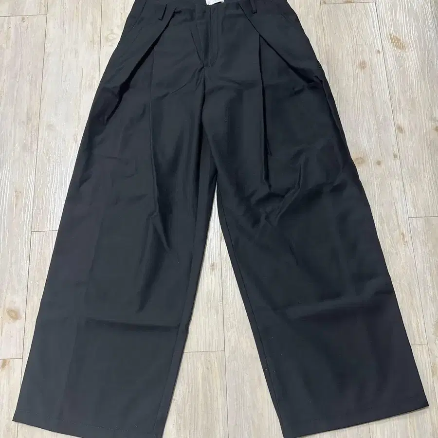 E.van 블랙 허리 폴드 와이드 벌룬 슬랙스