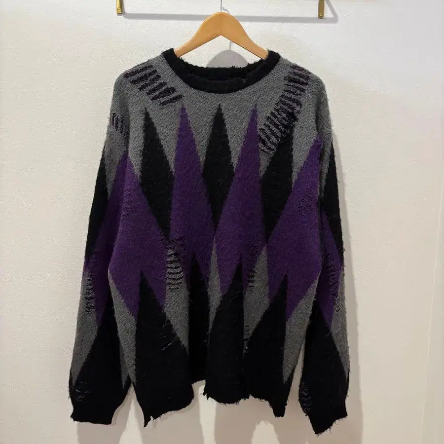 페니즈 타운크래프트 아가일 다이아 무늬 데미지 가공 니트 커트 코베인