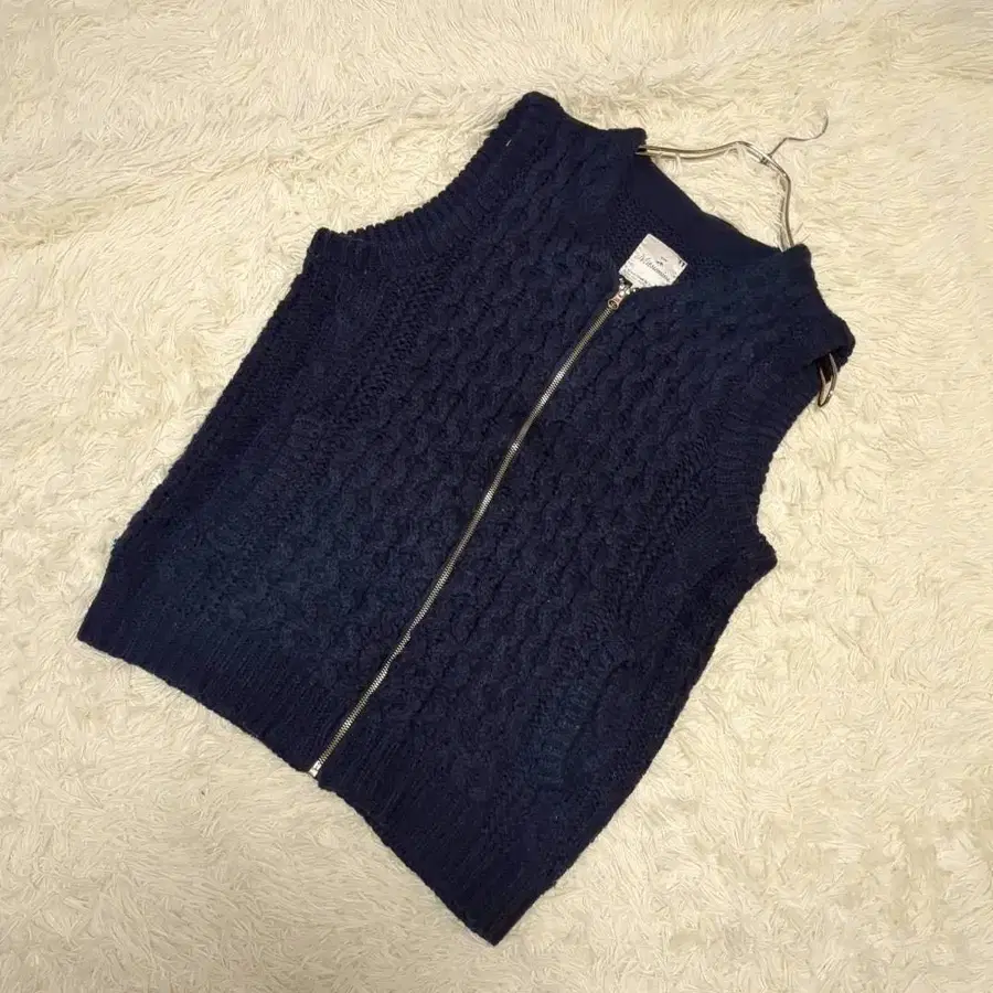 Mitsumine 집업 로우 게이지 니트 베스트 네이비 M