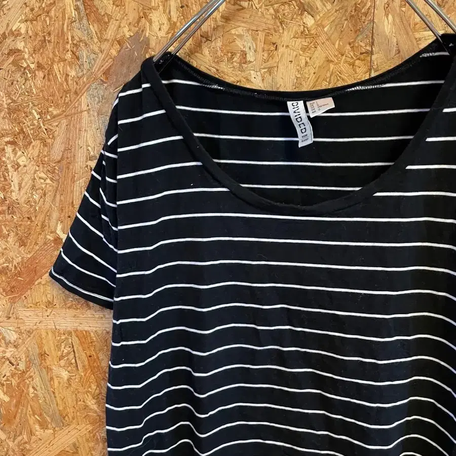 AE9391 H&M 반팔 티셔츠 블랙 보더 여성용 L 사이즈