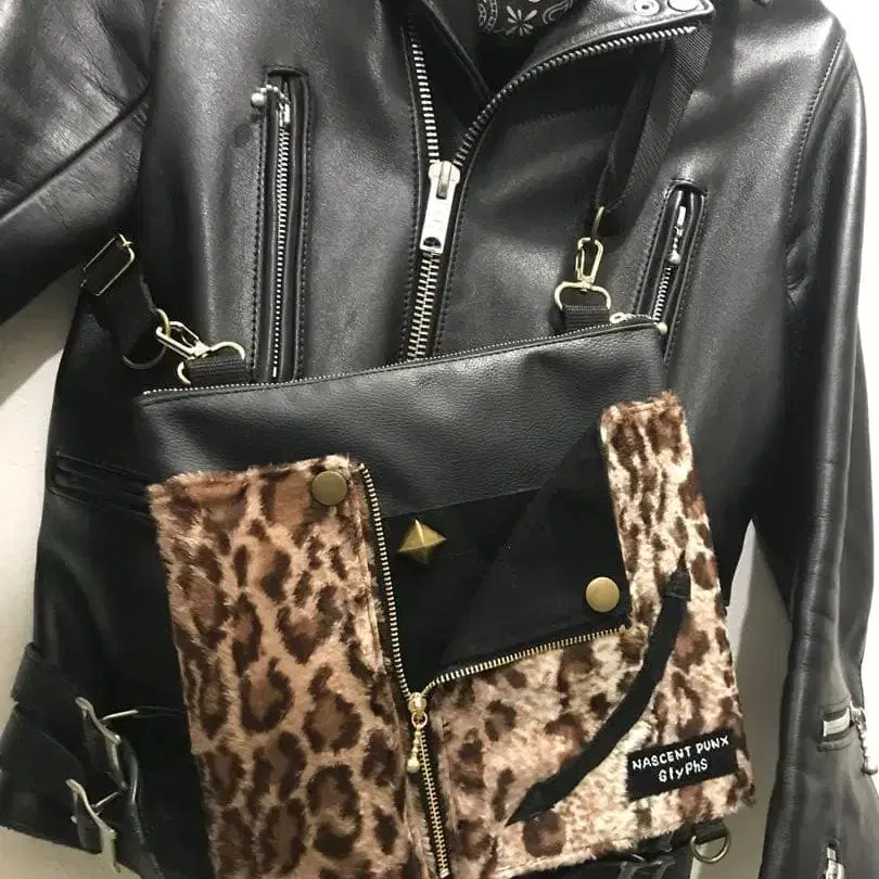 GlyPhS 오리지널 레오파드 퍼 GOLD ZIP 라이더스 숄더