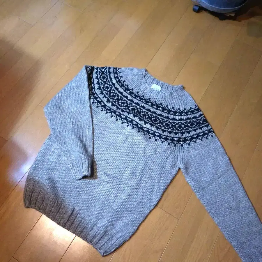 노르딕 무늬 베이지 긴팔 니트 스웨터