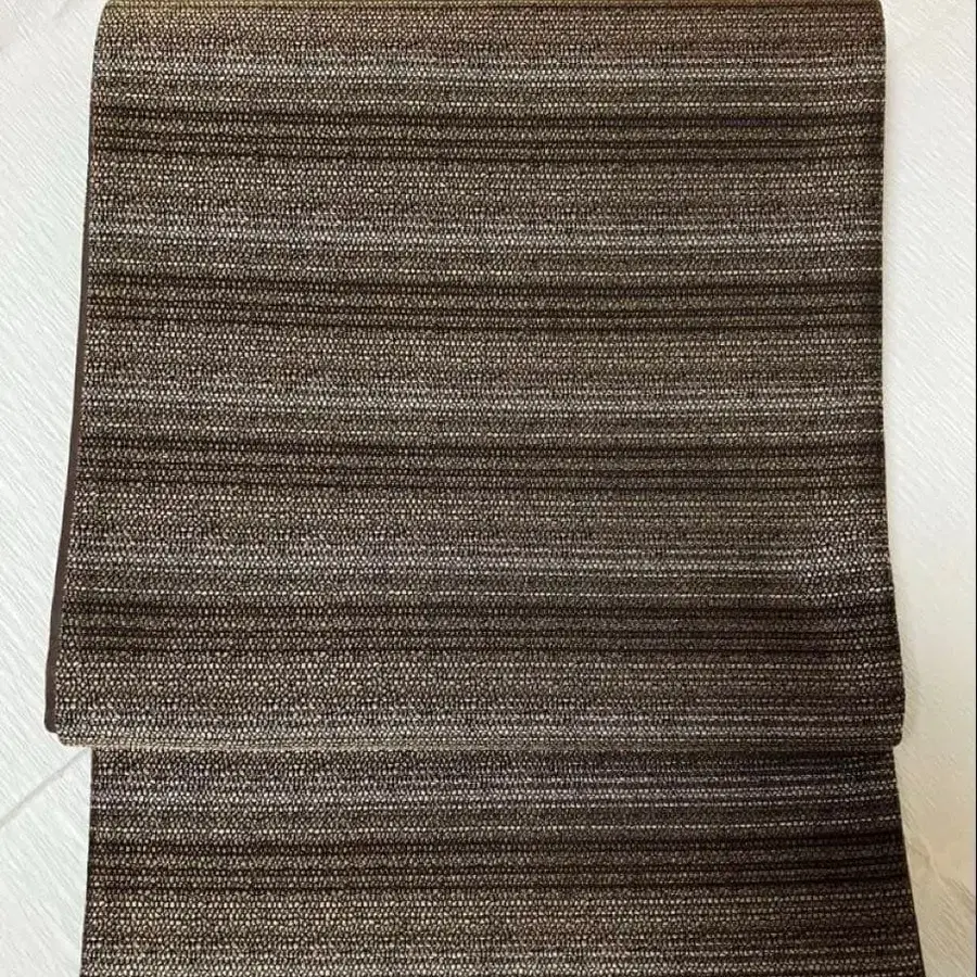 순수 실크 후쿠로 오비 전체 무늬 가로 줄무늬 금실 다크 브라운 계열