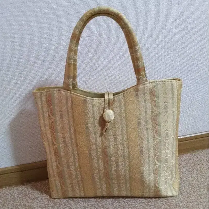 일본 의류용 가방 골드 컬러 스트라이프 무늬 중형
