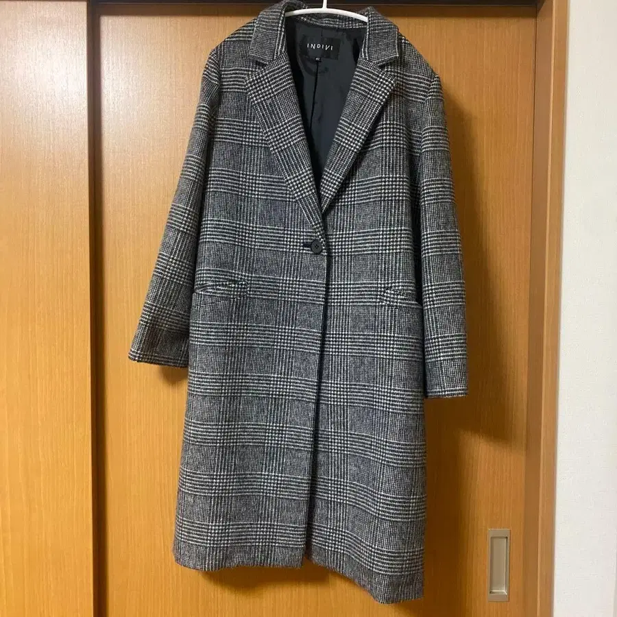 새상품급 INDIVI 체크 무늬 체스터 코트 40