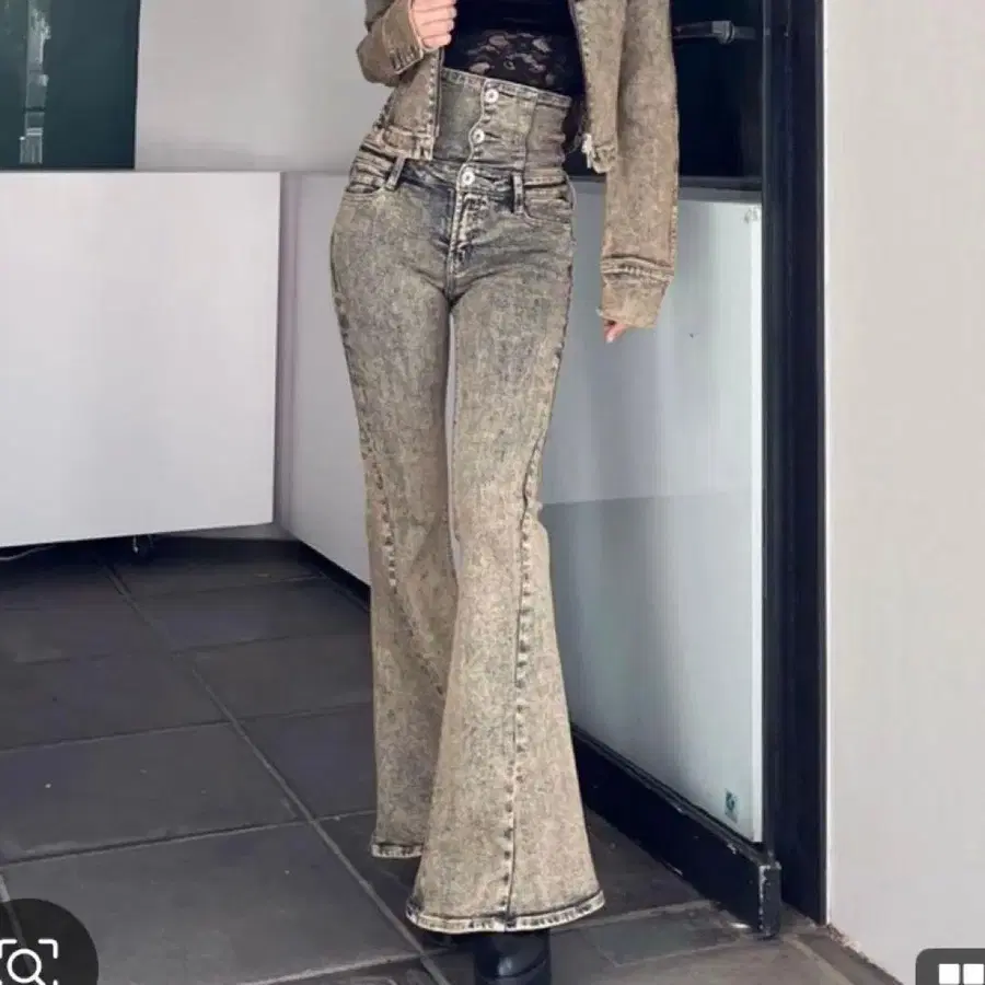 새상품급 GYDA 하이웨스트 케미컬 워시 스트레치 플레어 데님 팬츠