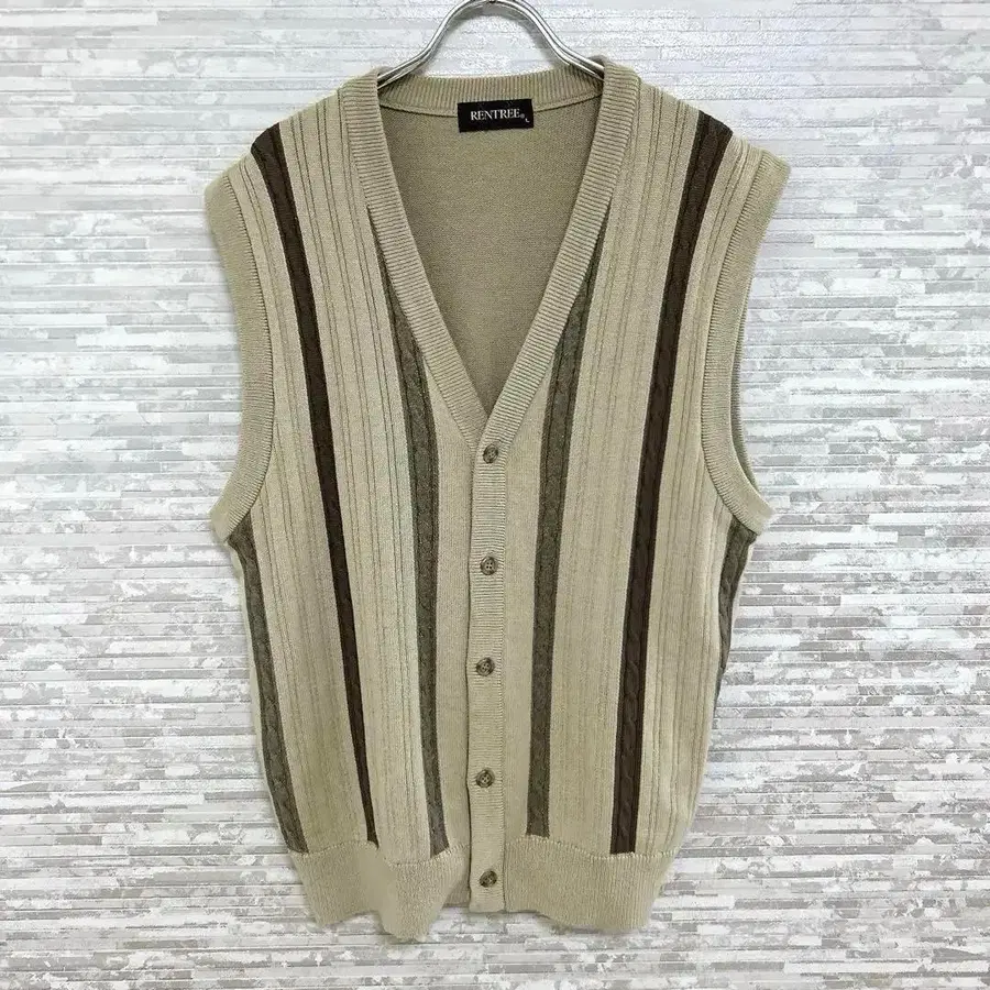 베이지를 기조로 브라운 계열의 스트라이프가 들어간 복고풍 느낌의 니트 베스트.