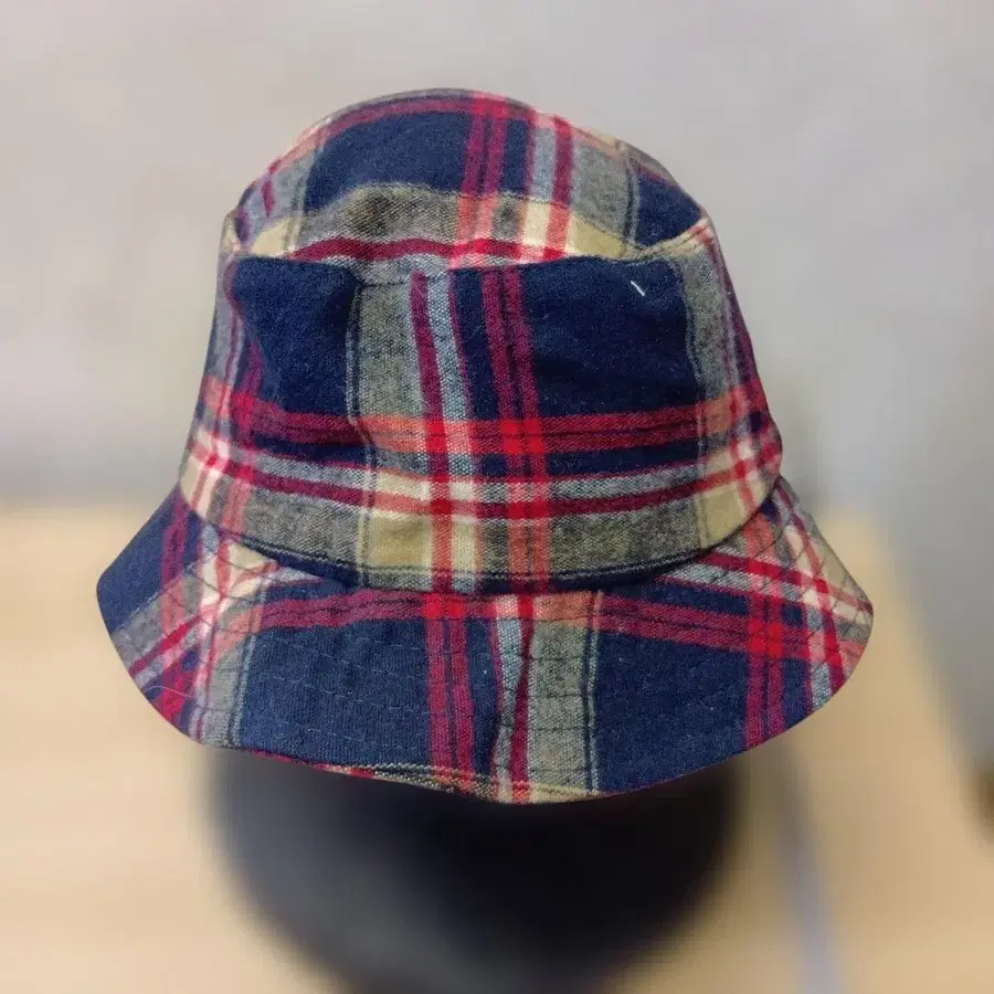 (298) 볼컴 체크 무늬 버킷 햇 네이비/레드/베이지