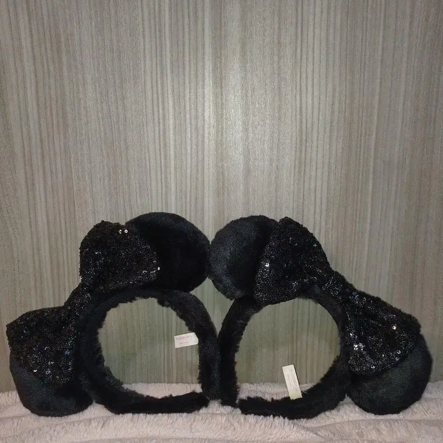미니 리본 머리띠 스팽글 복슬복슬 블랙 디즈니 리조트