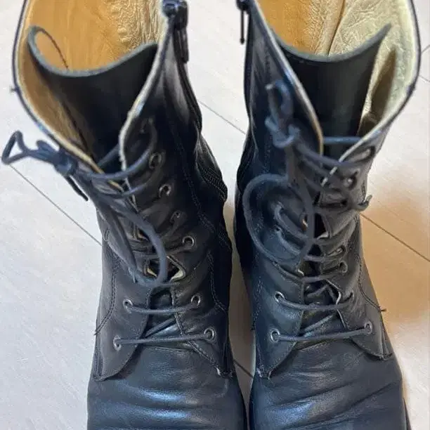 가죽 블랙 레이스업 부츠 중간 힐