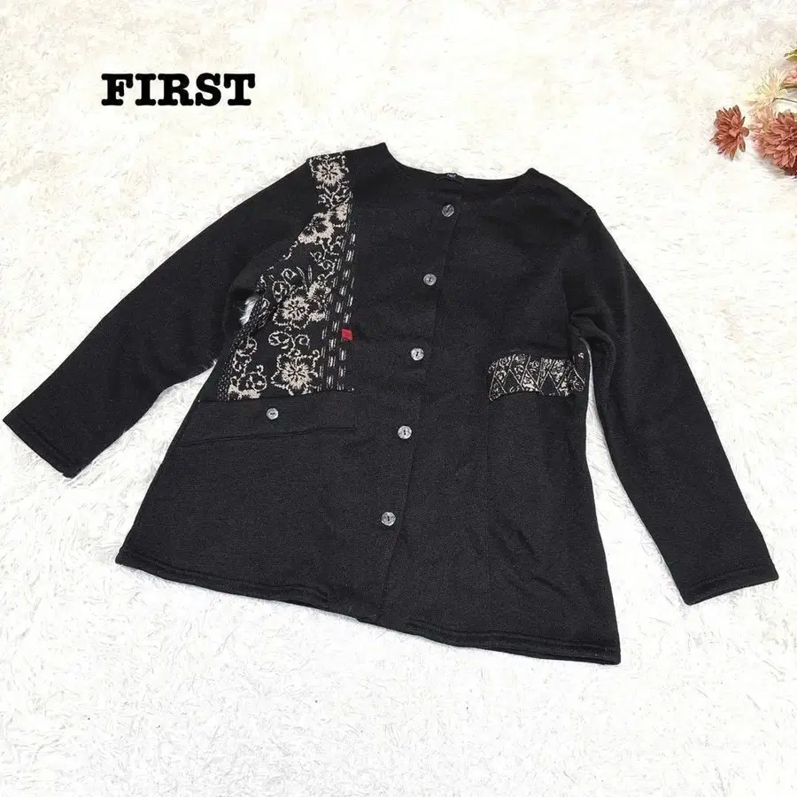 s.1963 [퍼스트] 긴팔 가디건 속기모 개성있는 버튼 블랙