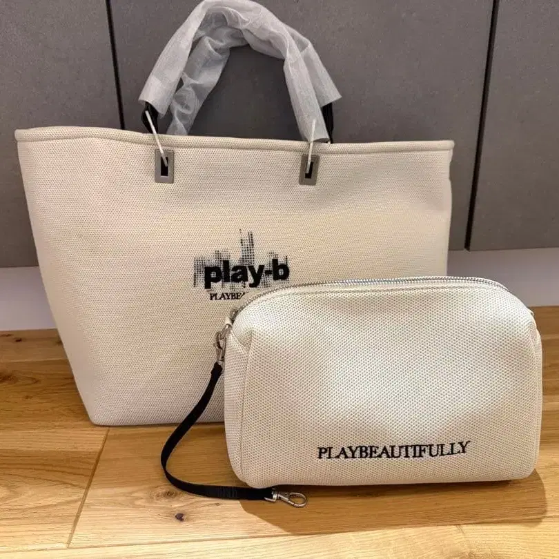 play-b 화이트 토트백 & 파우치 세트