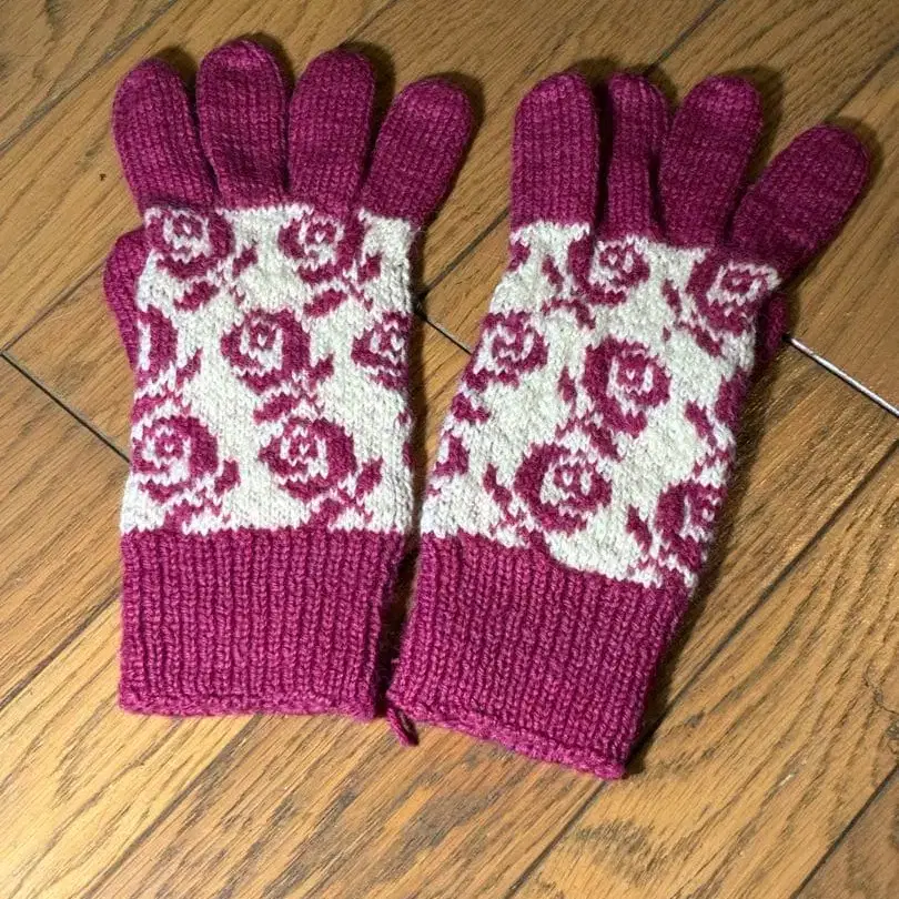 손 염색 초목 염색 털실 손뜨개질 장갑 (장미 무늬)