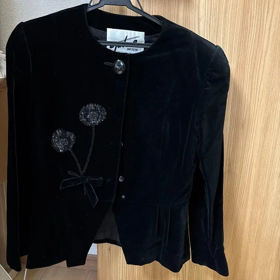 TAKEO NISHIDA 블랙 꽃 자수 노카라 자켓 11