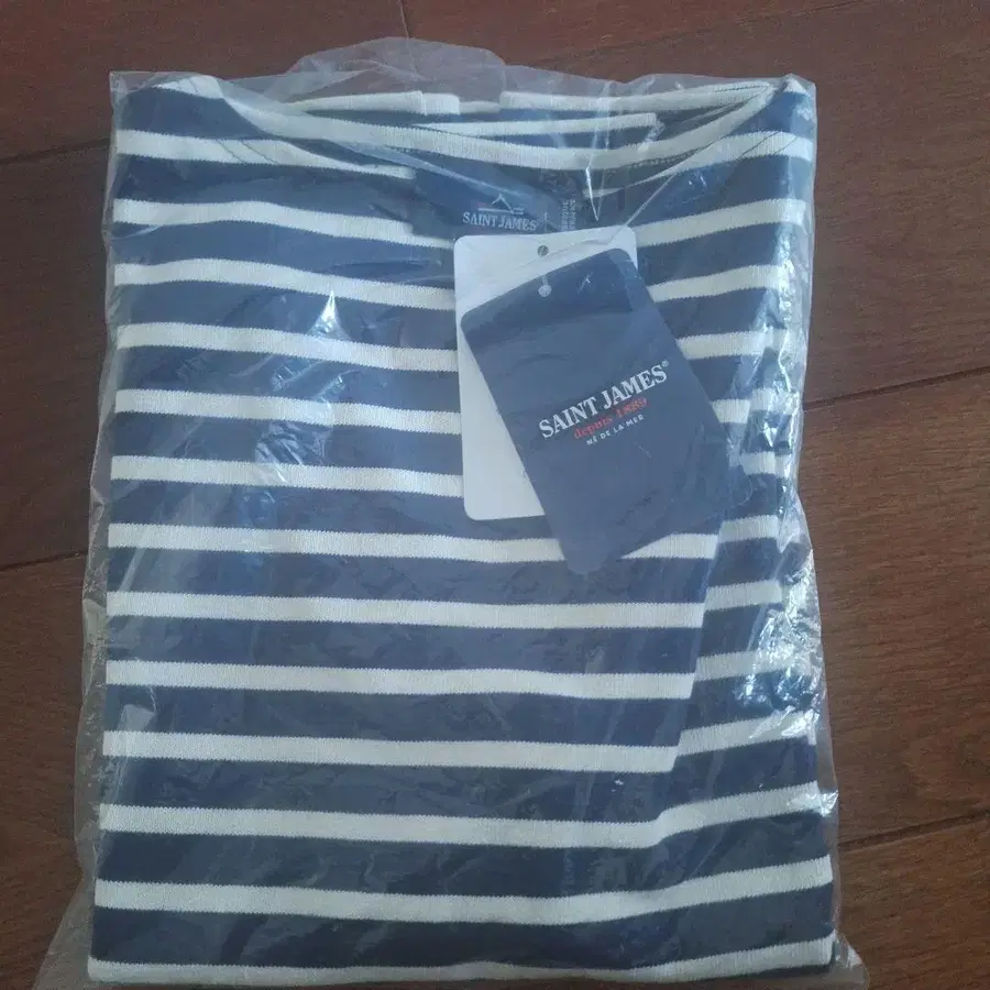 미사용품 생 제임스 긴팔 보더 두꺼운 원단 코튼 T1 네이비/화이트