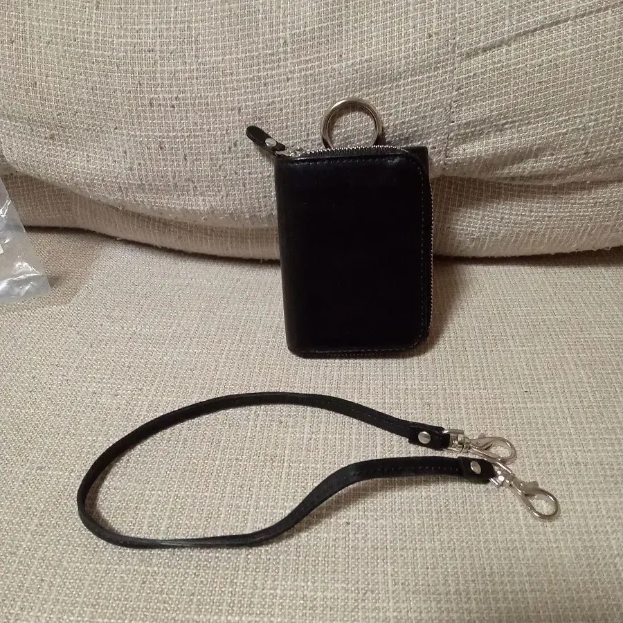 블랙 가죽 3단 폴더형 지갑 스트랩 포함