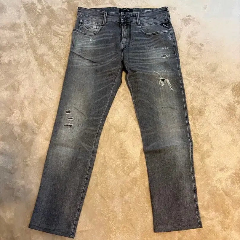 리플레이 청바지 데미지 가공 다크 그레이 W34