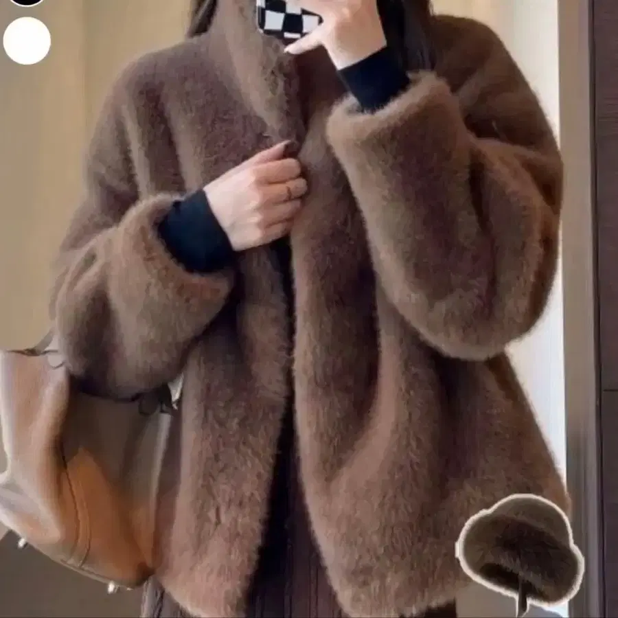 브라운 퍼 박스 실루엣 자켓 모자 포함