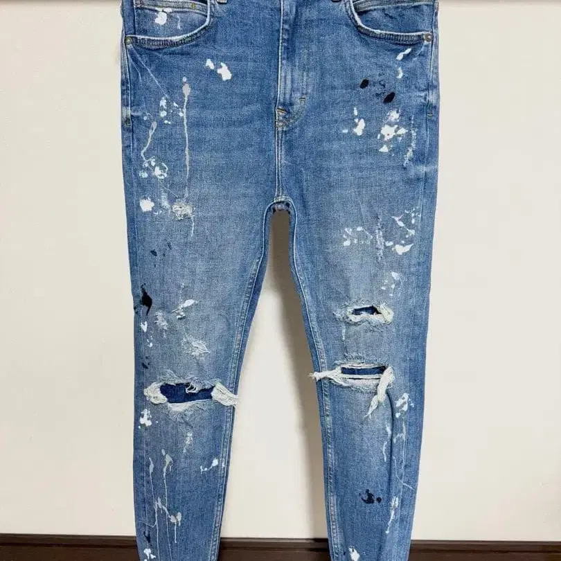 부드러운 페인트 ZARA MAN 컷오프 스트레치 데님 스키니