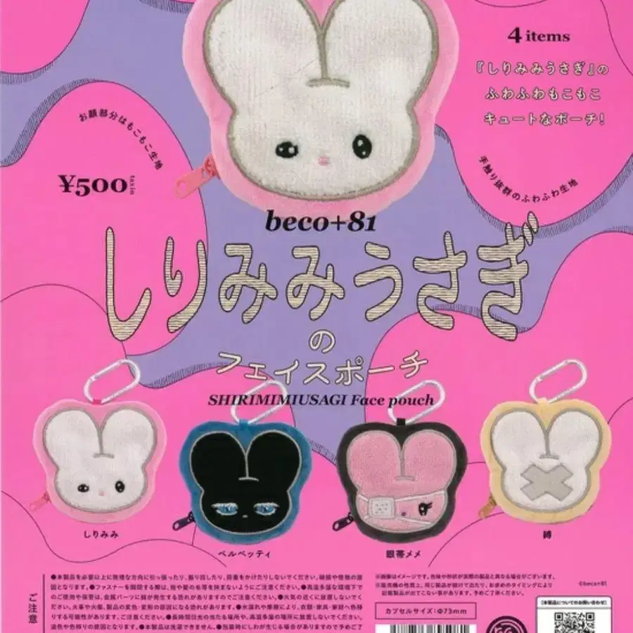 beco+81 엉덩이 귀 토끼 페이스 파우치 전 4종 세트