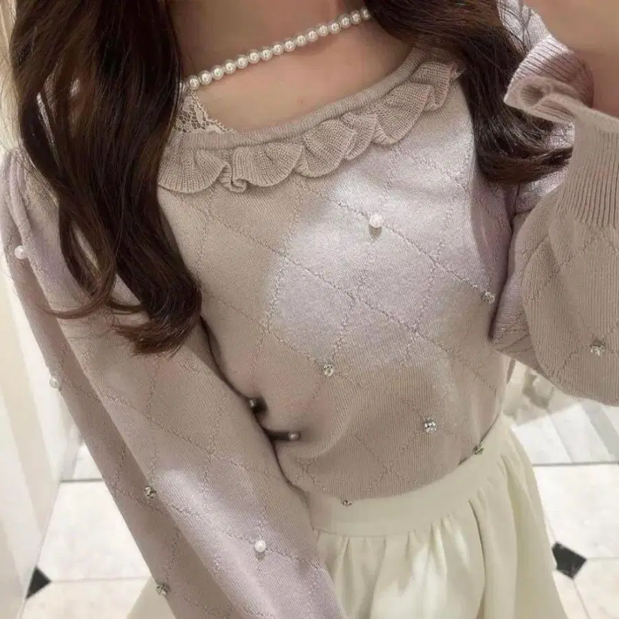 evelyn 비쥬 펄 니트 핑크