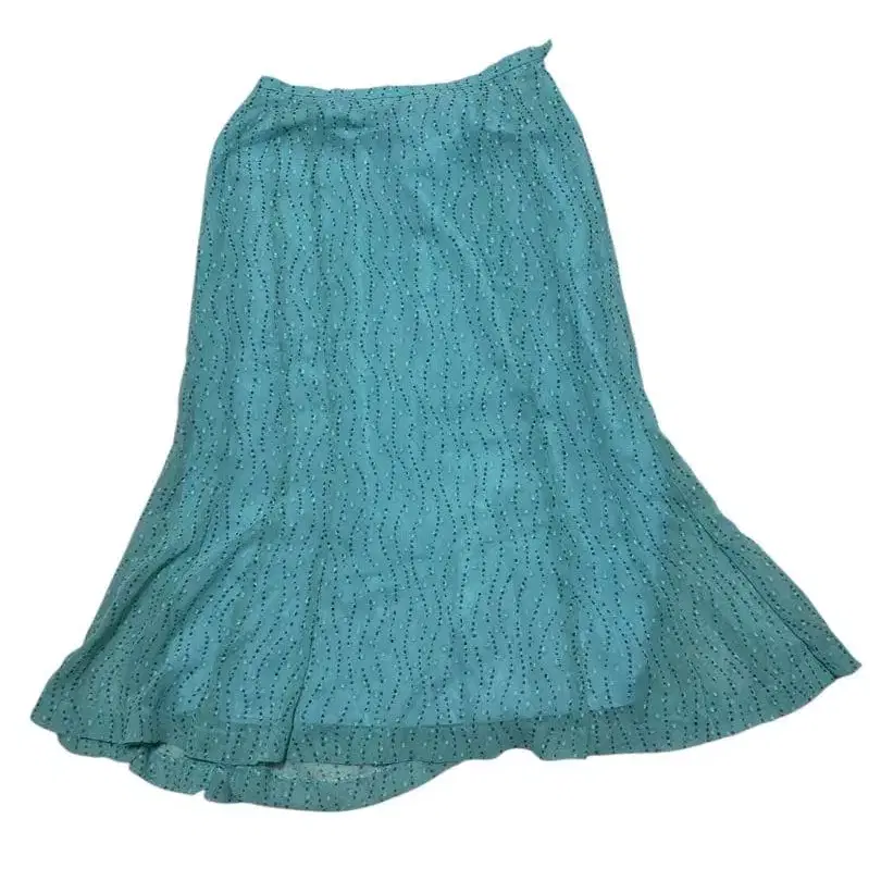 새상품급 터콰이즈 도트 무늬 플레어 스커트 M 사이즈 상당 안감 있음