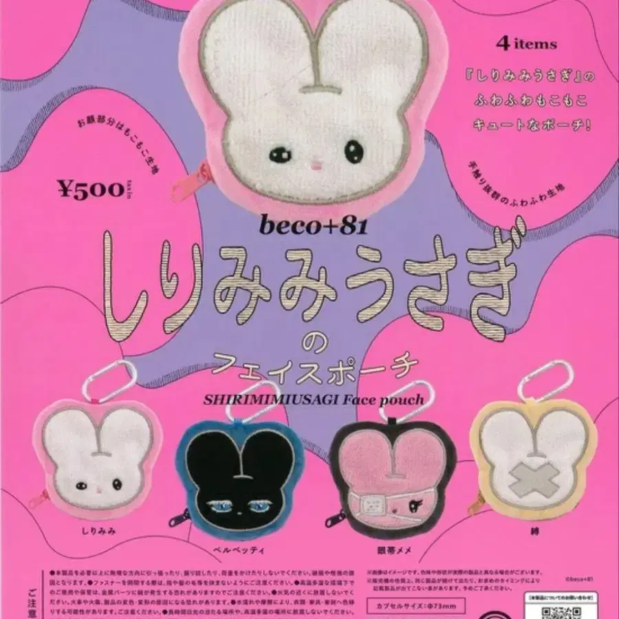 • beco+81 엉덩이 귀 토끼 페이스 파우치 전 4종 컴플리트 세트