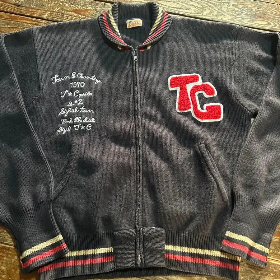 Town Country1970TC 자수 집업 니트 가디건 L 사이즈