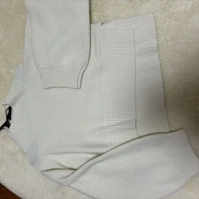 화이트 리브 편직 니트 & 스커트 세트