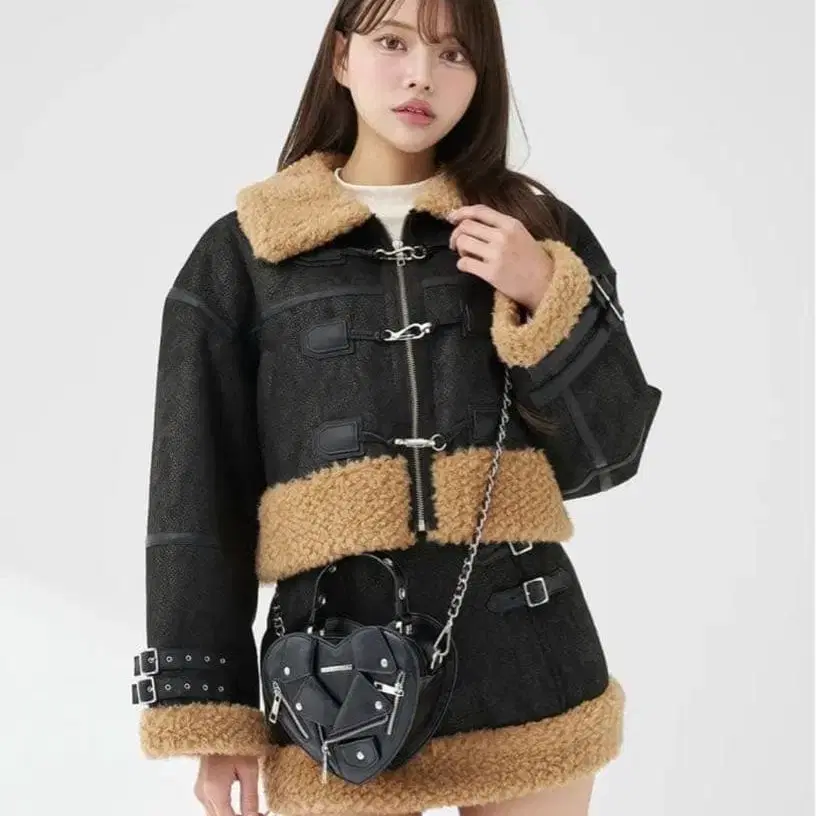 • MURUA 언이븐 페이크 무스탕 숏 자켓