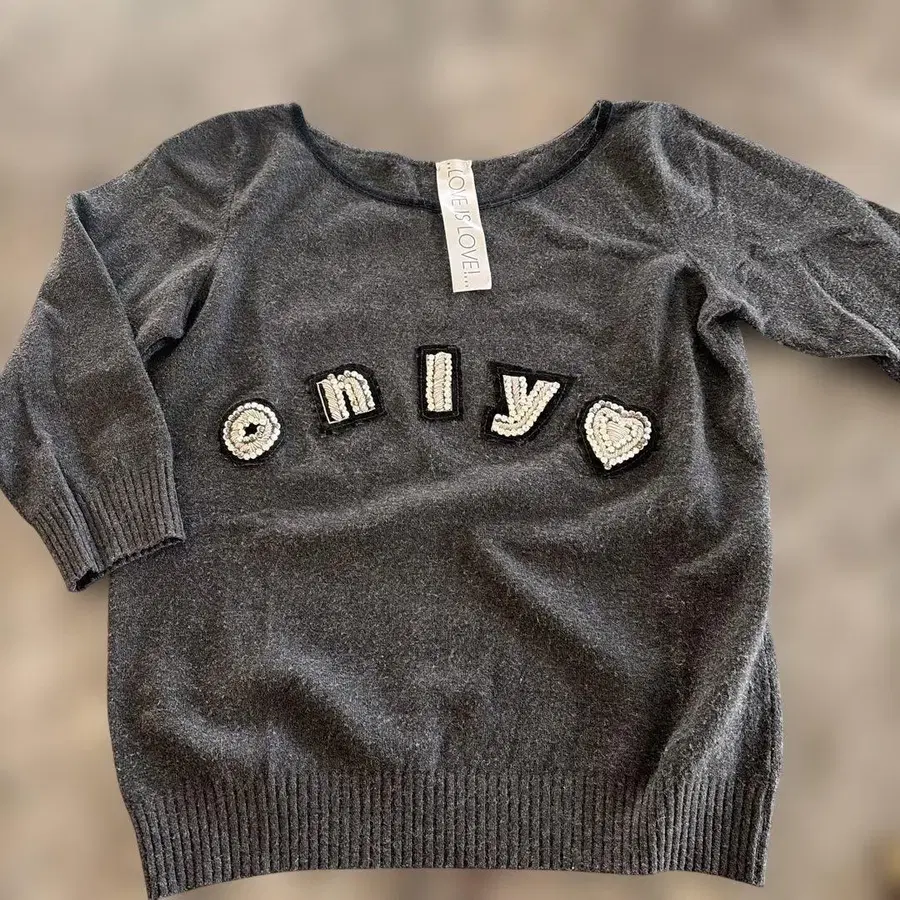 ONLY 그레이 니트 스웨터 로고 긴팔