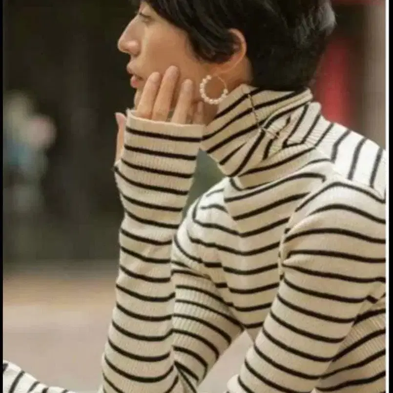 [ Re:EDIT ] 손가락 구멍 리브 니트 터틀넥 탑