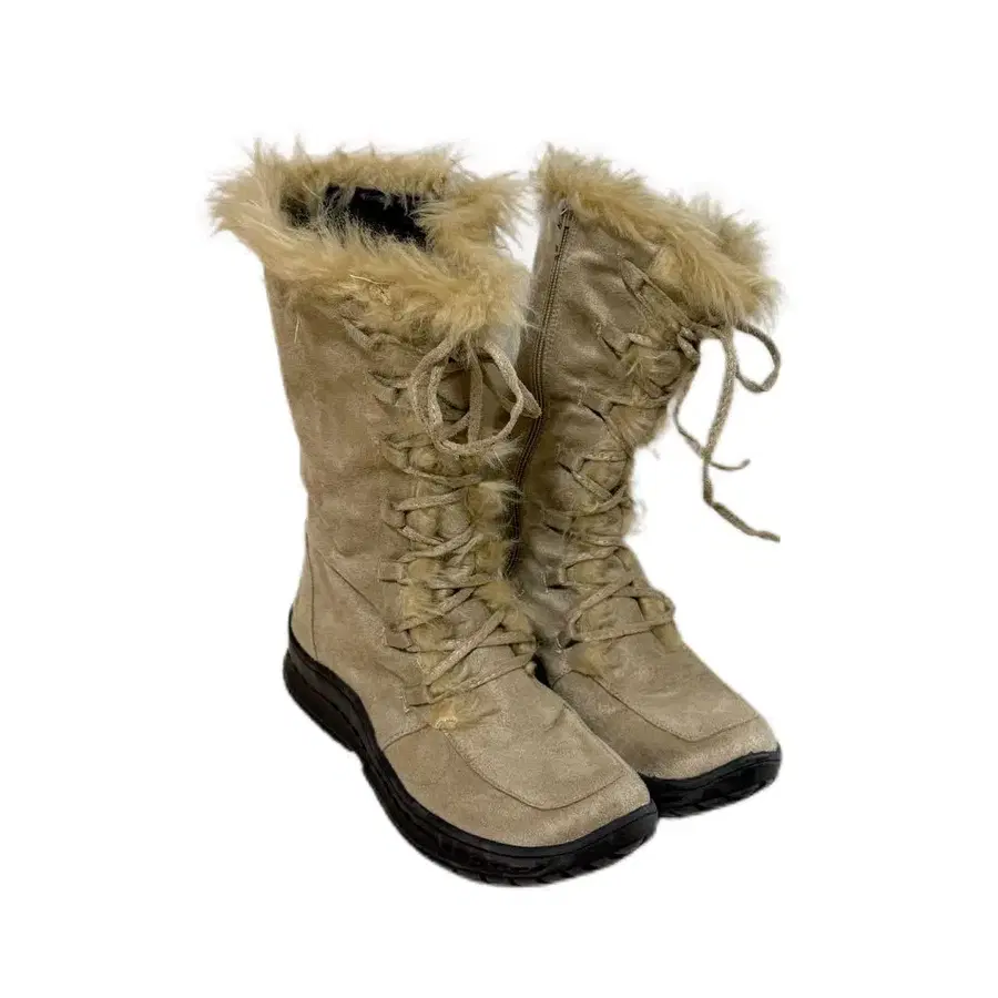 퍼 달린 베이지 스웨이드 부츠 겨울 페어리 그런지