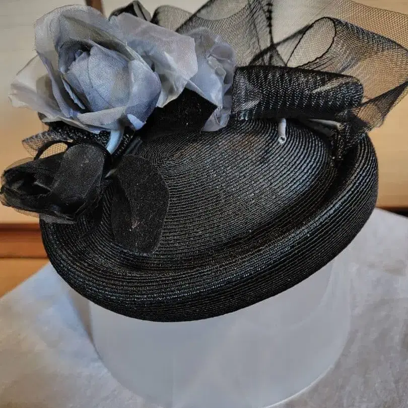블랙과 그레이의 꽃 장식 모자
