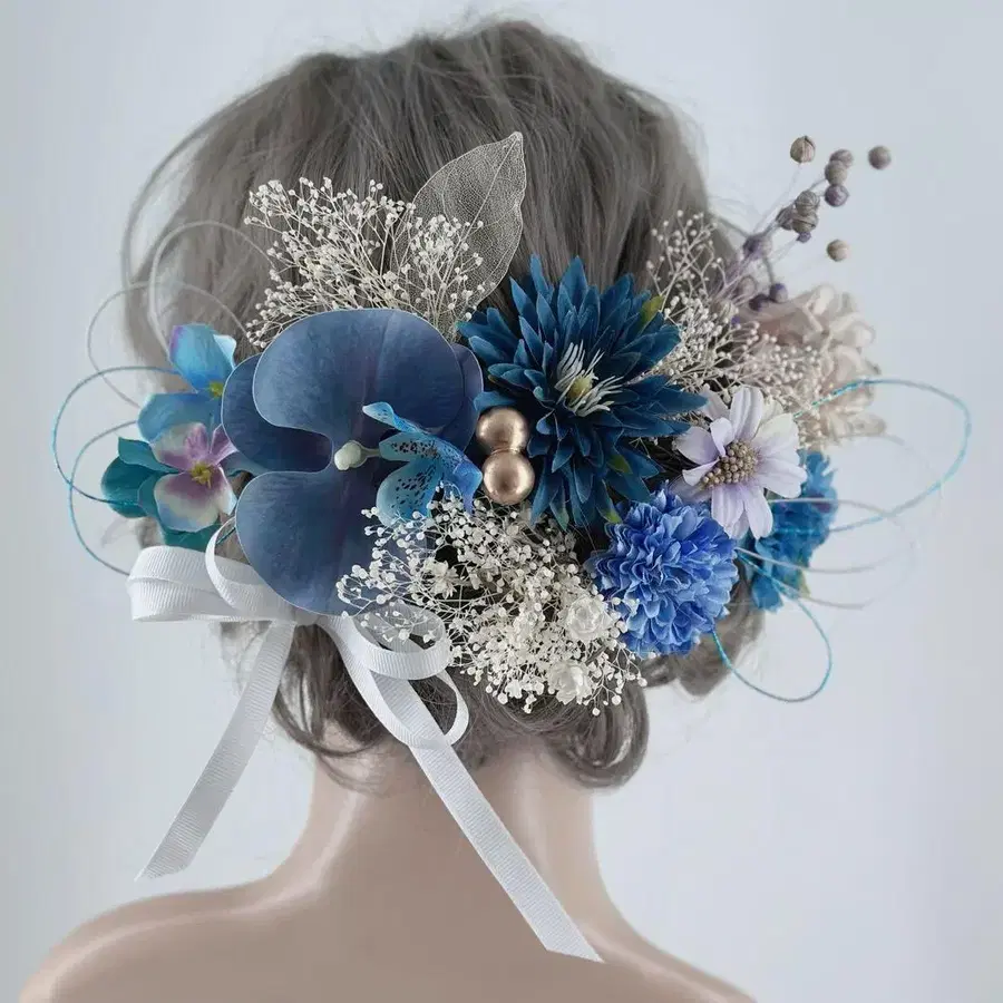 머리 장식 성인식 졸업식 결혼식 파랑 화이트 핑크 미즈히키 안개꽃 난